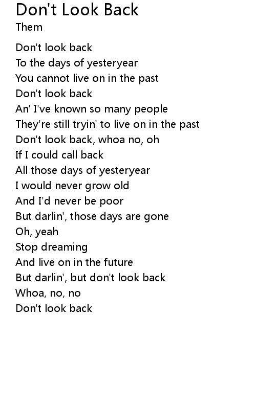 | Don't look back |