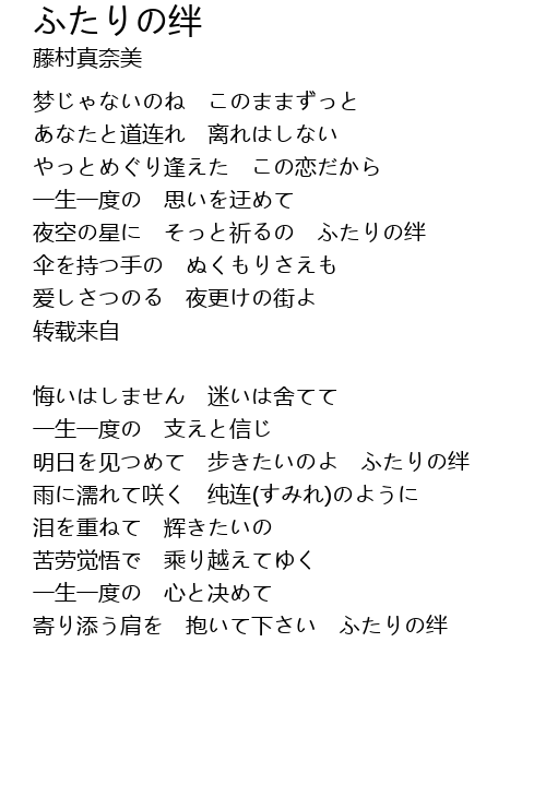 明日を见つめて 步きたいのよ ふたりの绊 |