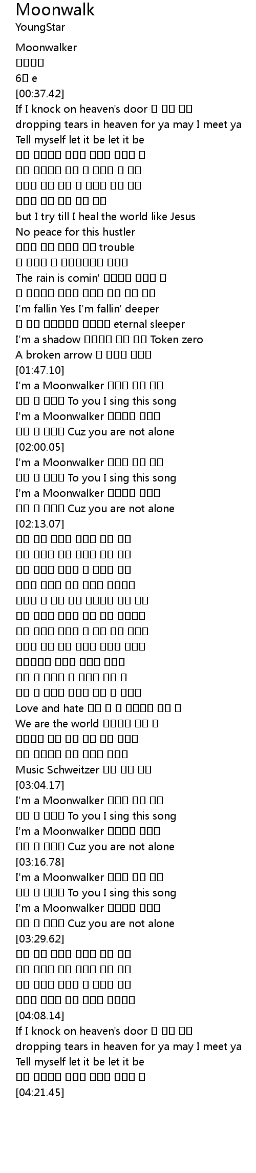 | [03:04.42] | I' m a Moonwalker |