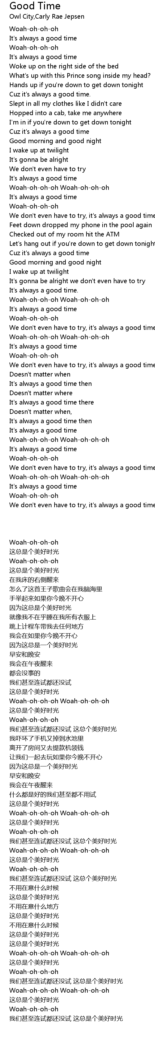 Good Time 歌词