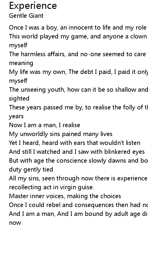 All my sins, seen through now there is experience and |
