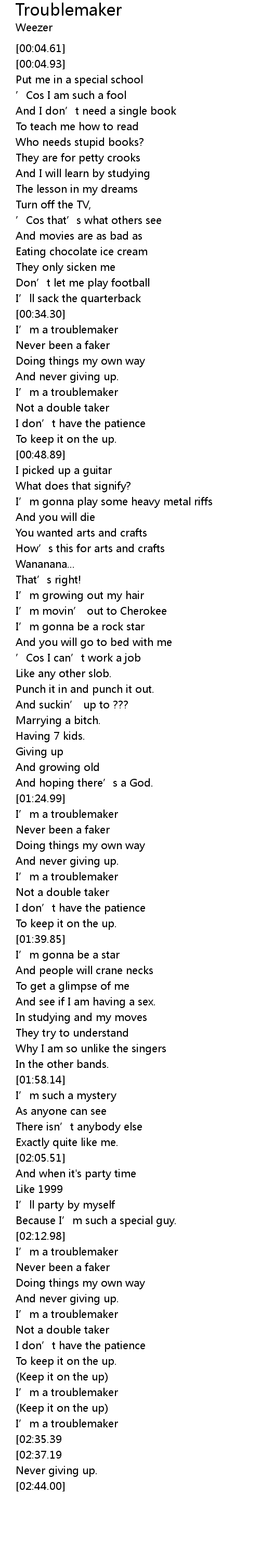 | [02:41.20][02:37.19] | I' m a troublemaker |