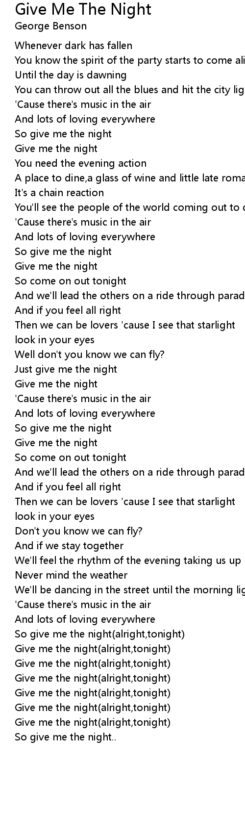 Give me the night(alright,tonight) |