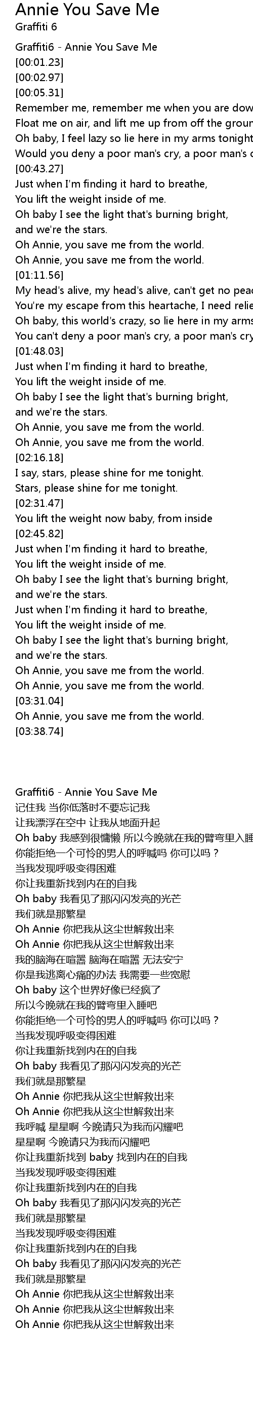Graffiti6 - Annie You Save Me |