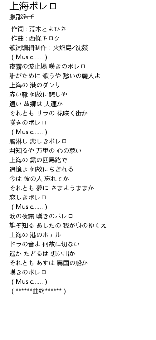 | [01:02.34] | 上海の 港のダンサー |