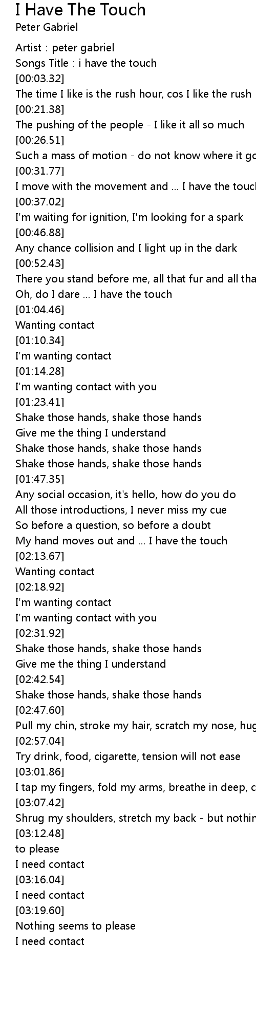 | [00:00.57] | Artist: peter gabriel |