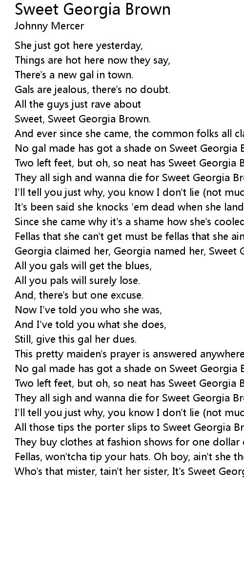 Georgia claimed her, Georgia named her, Sweet Georgia Brown. |