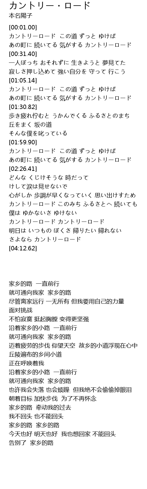| [03:42.29] | カントリーロード カントリーロード |