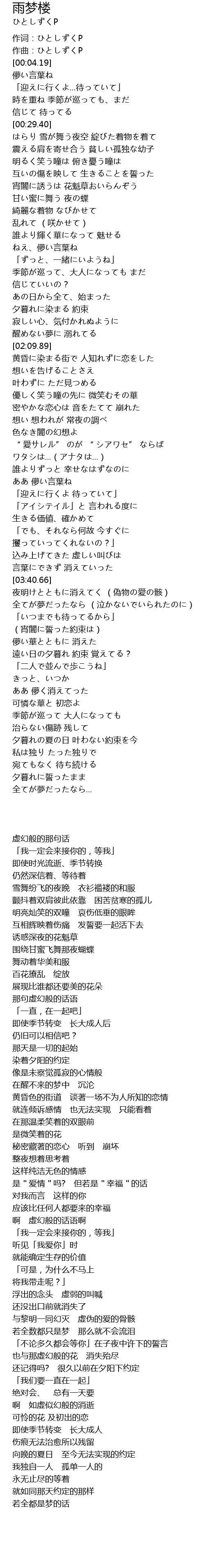 | [03:54.66] | 「いつまでも待ってるから」 (宵闇に誓った約束は) |