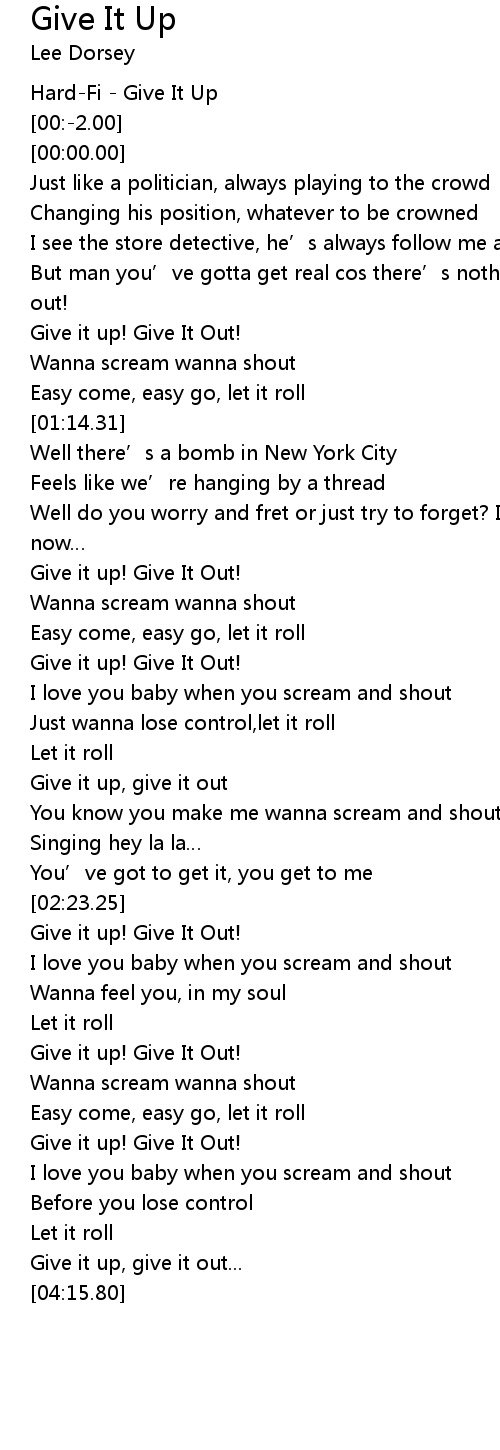 | [00:-4.00] | Hard-Fi - Give It Up |