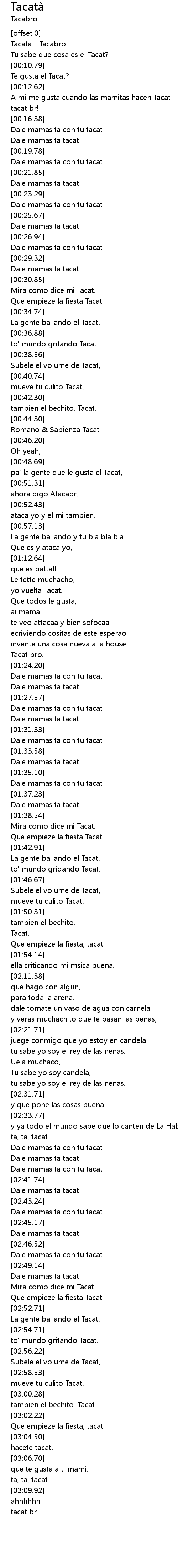 | [00:09.80] | Tu sabe que cosa es el Tacat? |