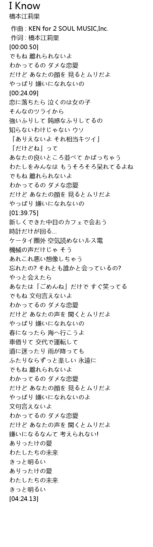 | [03:42.16] | わかってるの ダメな恋愛 |
