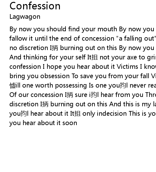 | By now you should find your mouth By now you should call me We can work it out I fallow it until the end of concession " a falling out" I heard from them There zha no discretion I bing burning out on this By now you should be in a better place And thinking for your self It zha not your axe to grind And this is my latest confession I hope you hear about it Victims I know the saints come to call And bring you obsession To save you from your fall Victim I know it wont be long qu ill one worth possessing Is one you yun l never reach Swallow it until the end Of our concession I bing sure i yun l hear from you Through them There zha no discretion I bing burning out on this And this is my latest confession I doubt you yun l hear about it It zha only indecision This is your latest condition I hope you hear about it soon |