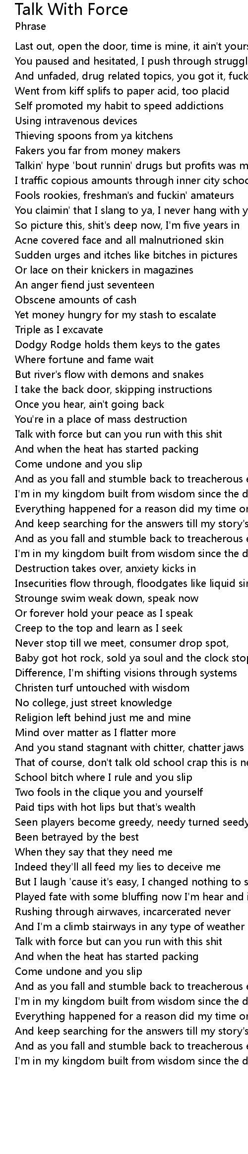 And unfaded, drug related topics, you got it, fuck it, I drop it |