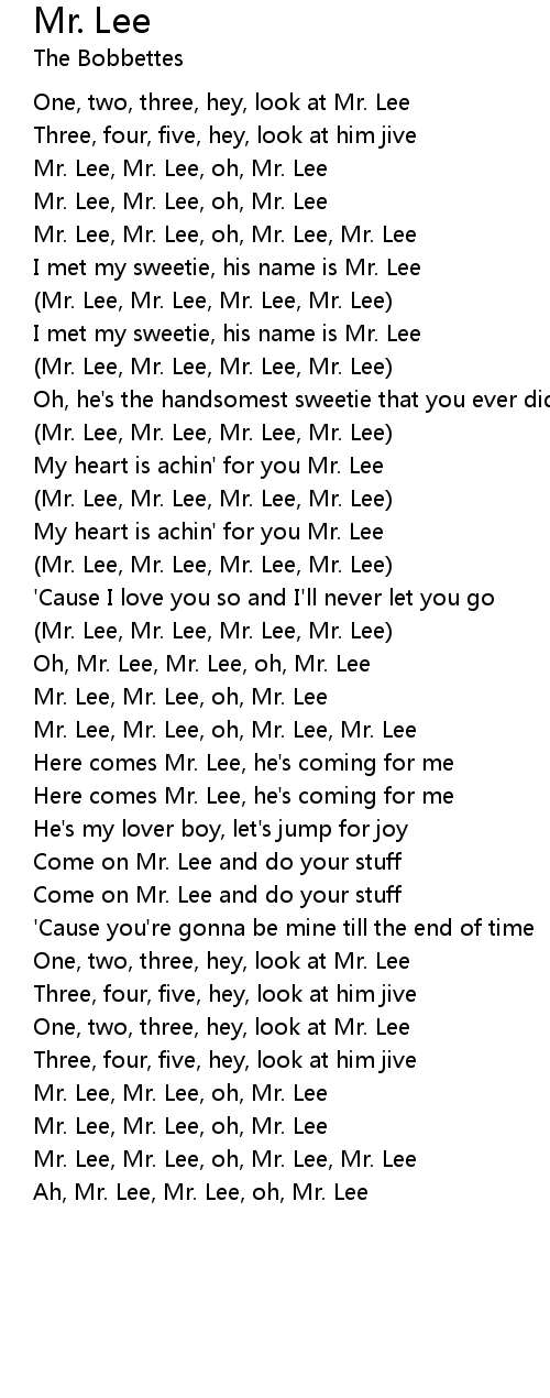 Mr. Lee, Mr. Lee, oh, Mr. Lee, Mr. Lee |