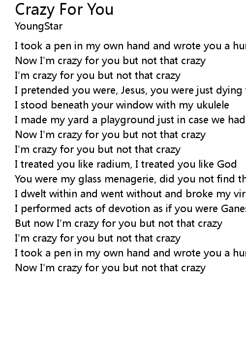 Now I'm crazy for you but not that crazy |