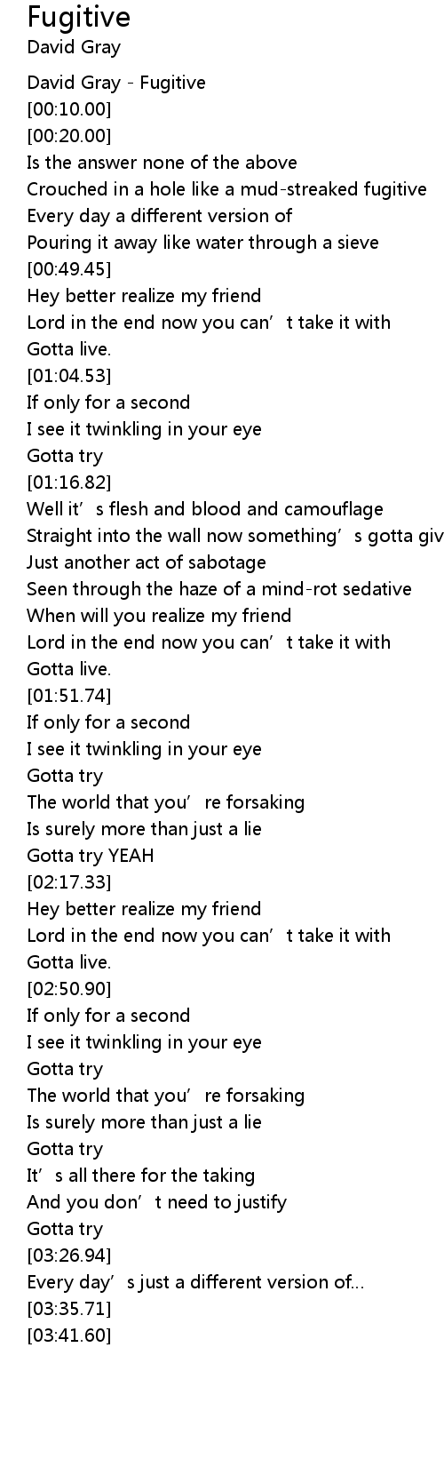 | [00:00.00] | David Gray Fugitive |