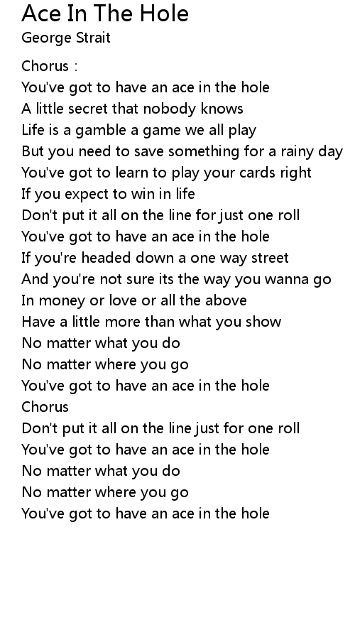 | You've got to have an ace in the hole |