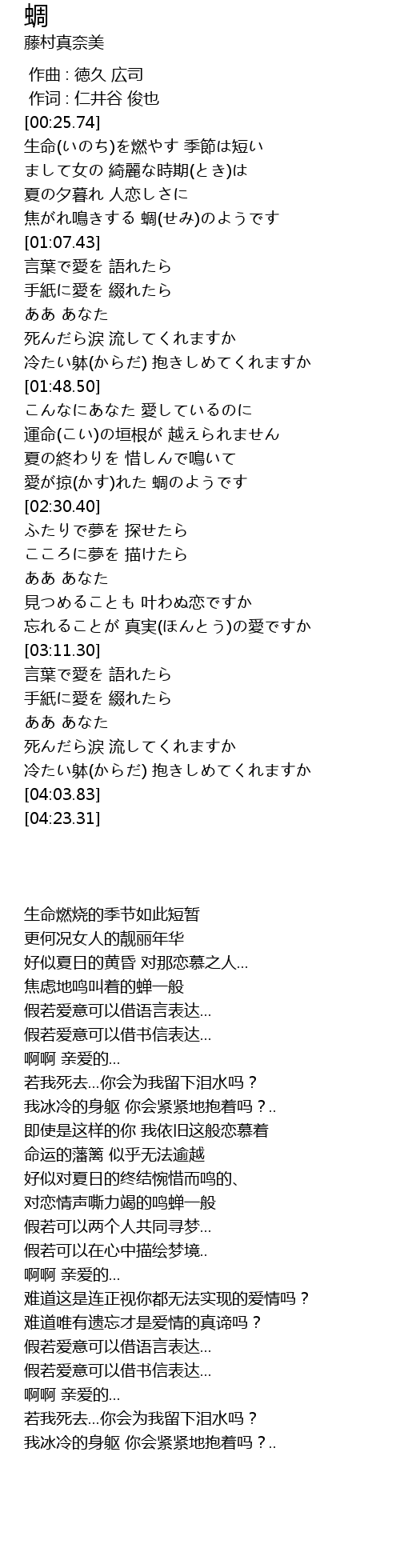 | [00:42.15] | 生命(いのち)を燃やす 季節は短い |