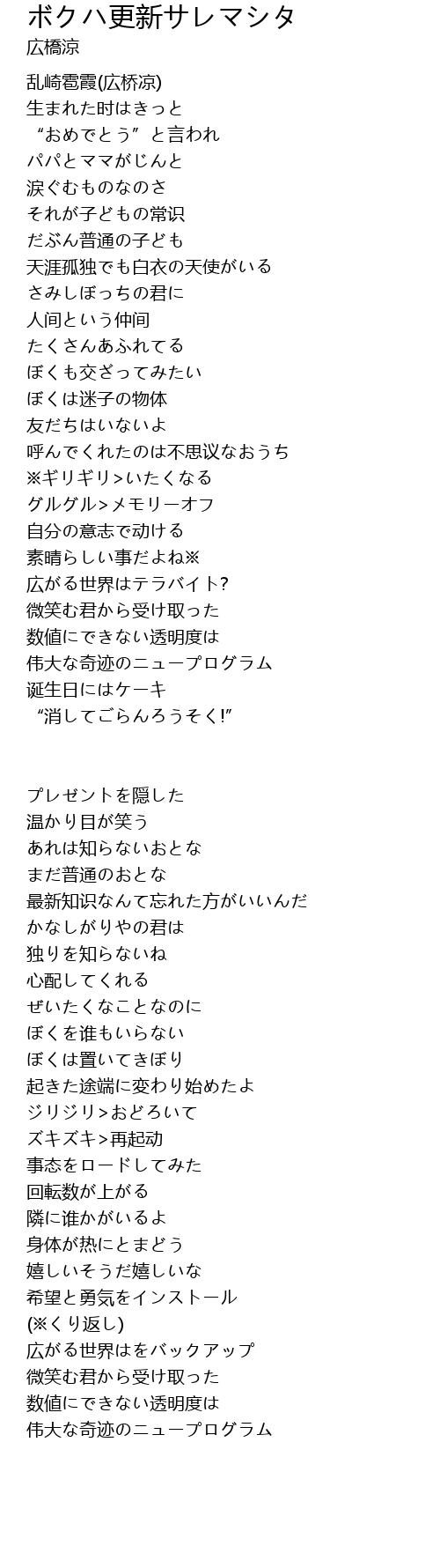 | 歌曲 | ボクハ更新サレマシタ |