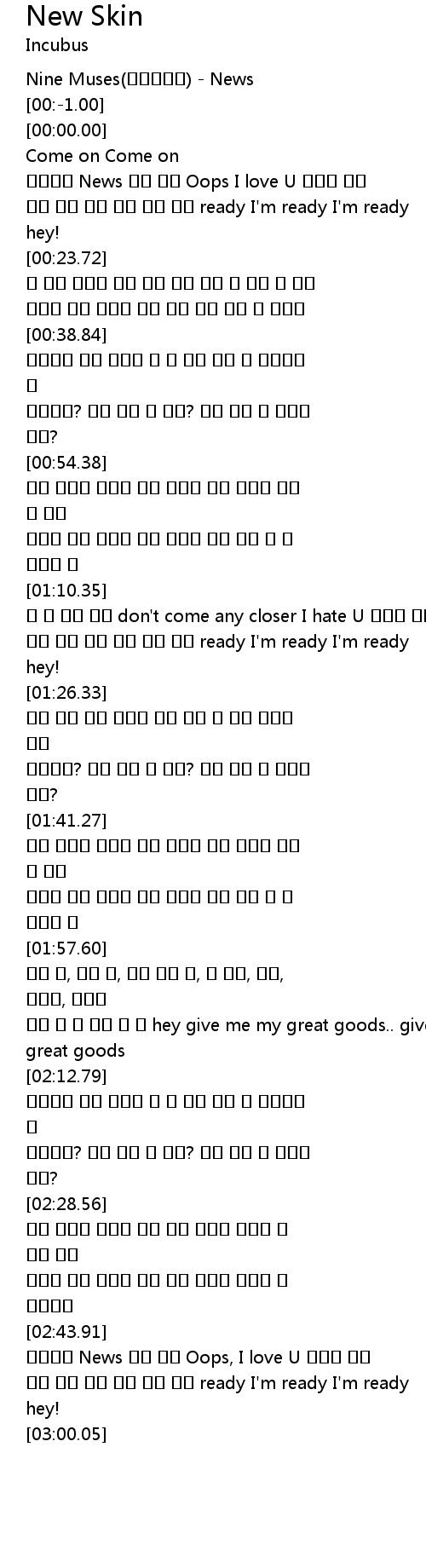 | [02:44.54] | 헤어지잔 News 이제 와서 Oops, I love U 여기서 멈춰 |