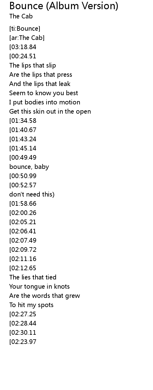 | [00:43.56][00:49.49][01:47.39][01:53.31][02:14.91][02:20.71][02:50.56][02:56.61] |