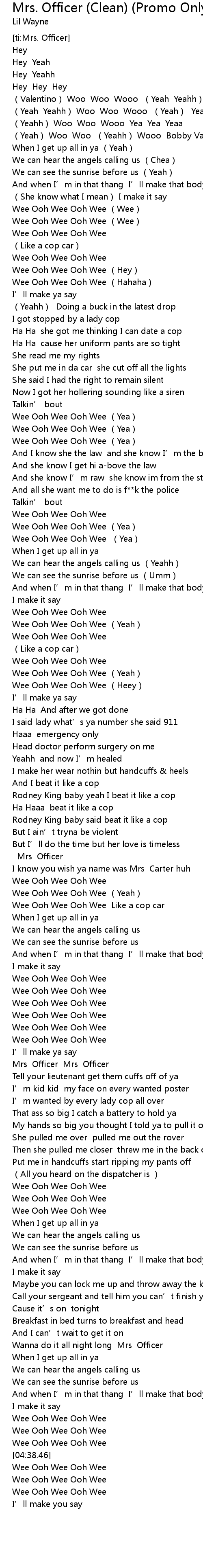 | [04:17.33] | Wanna do it all night long Mrs Officer |