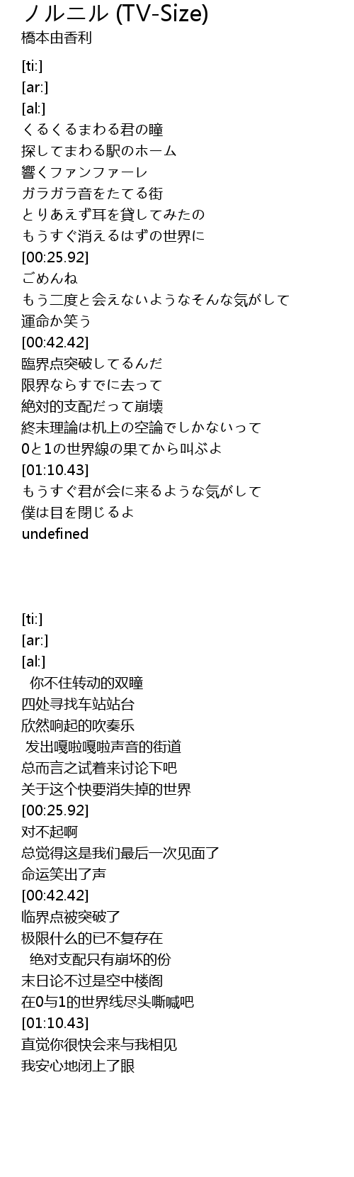 | [01:02.04] | 0と1の世界線の果てから叫ぶよ |