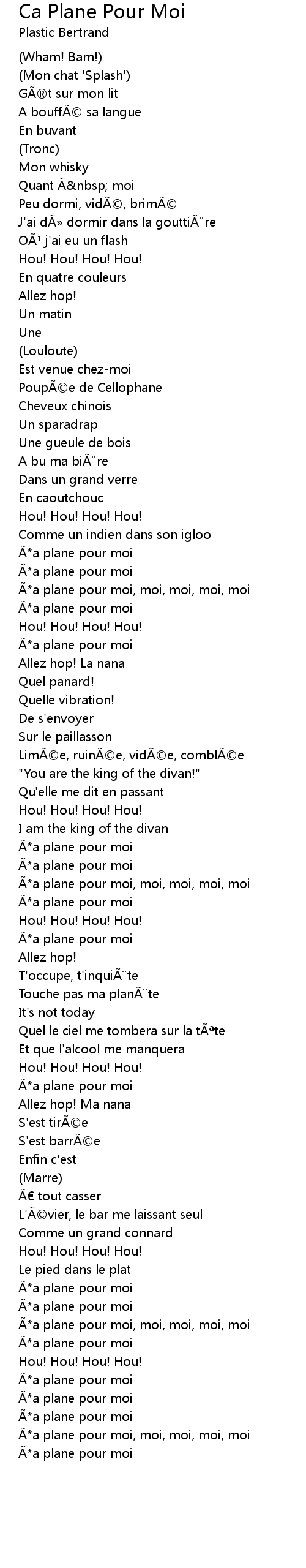 | Ã*a plane pour moi, moi, moi, moi, moi | |