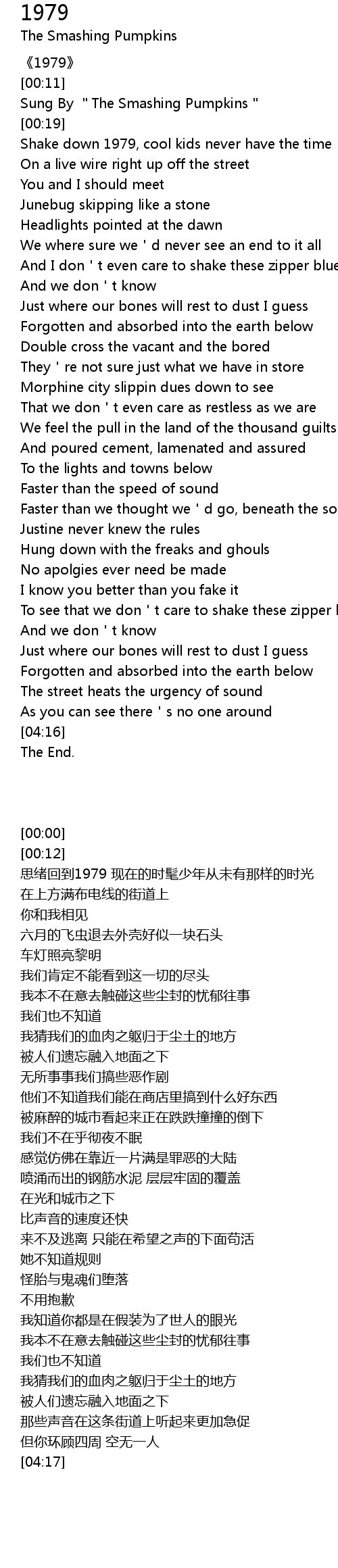 | [00:20] | 思绪回到1979 现在的时髦少年从未有那样的时光 |