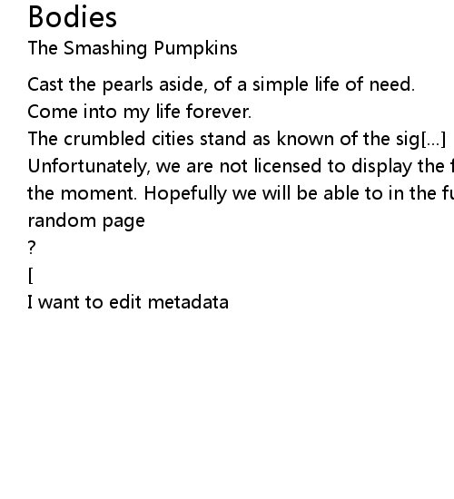 | Unfortunately, we are not licensed to display the full lyrics for this song at the moment. Hopefully we will be able to in the future. Until then, how about a | |