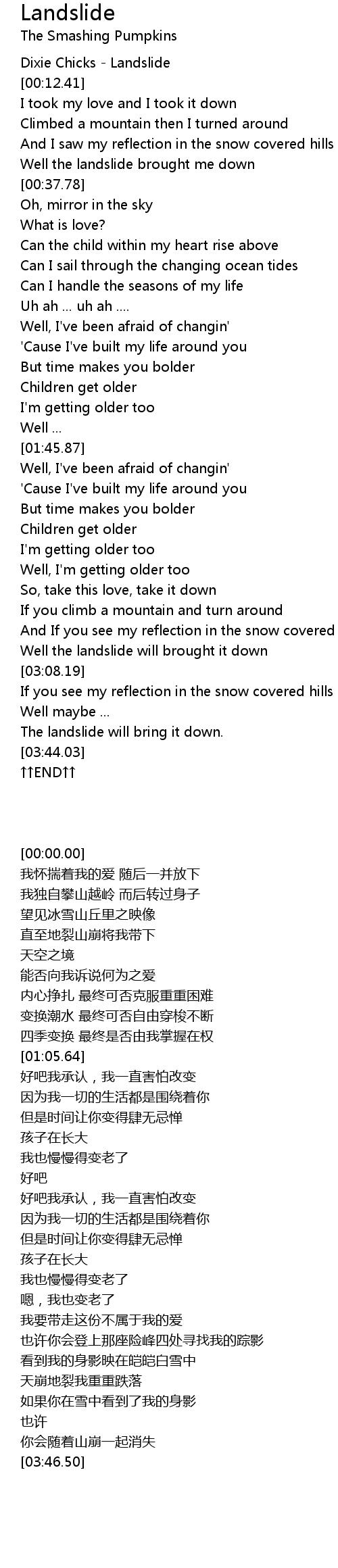 | [00:32.86] | Well the landslide brought me down |