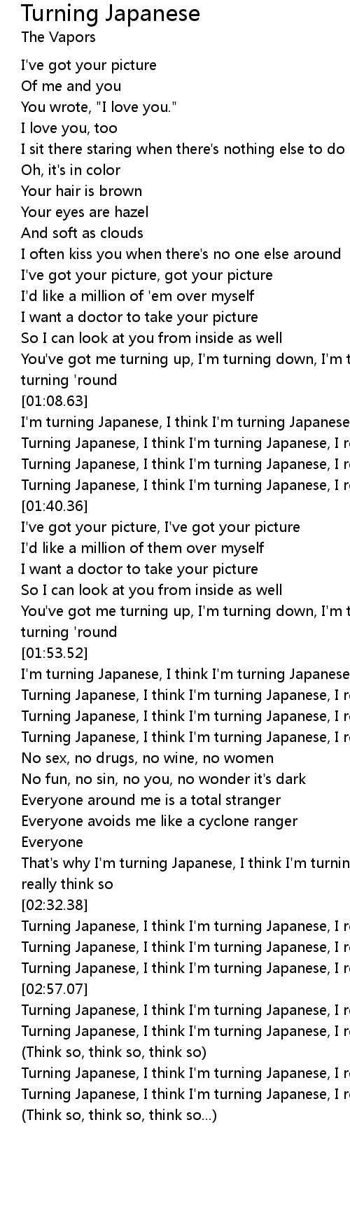 [01:59.81] Turning Japanese, I think I'm turning Japanese, I really think so
