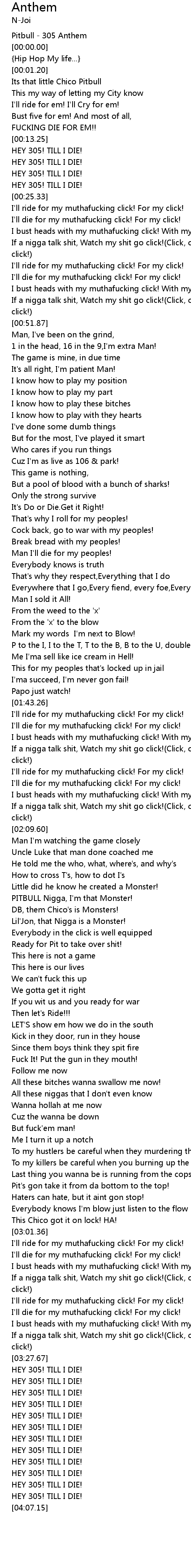 [03:50.83] HEY 305! TILL I DIE!
