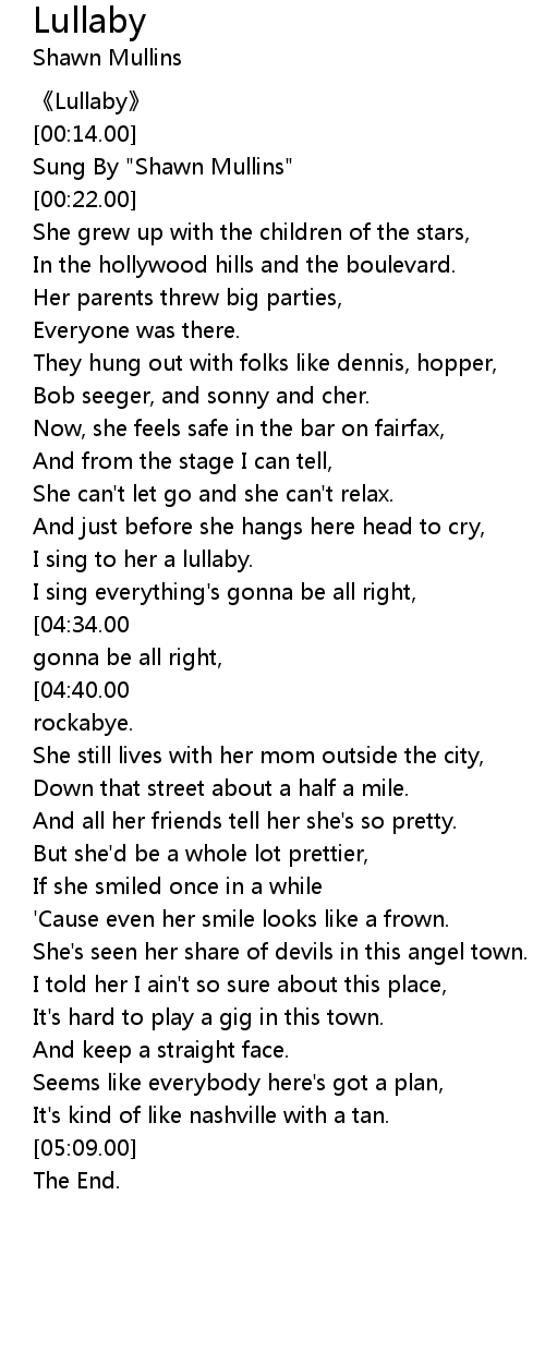 | [00:15.00] | Sung By "Shawn Mullins" |