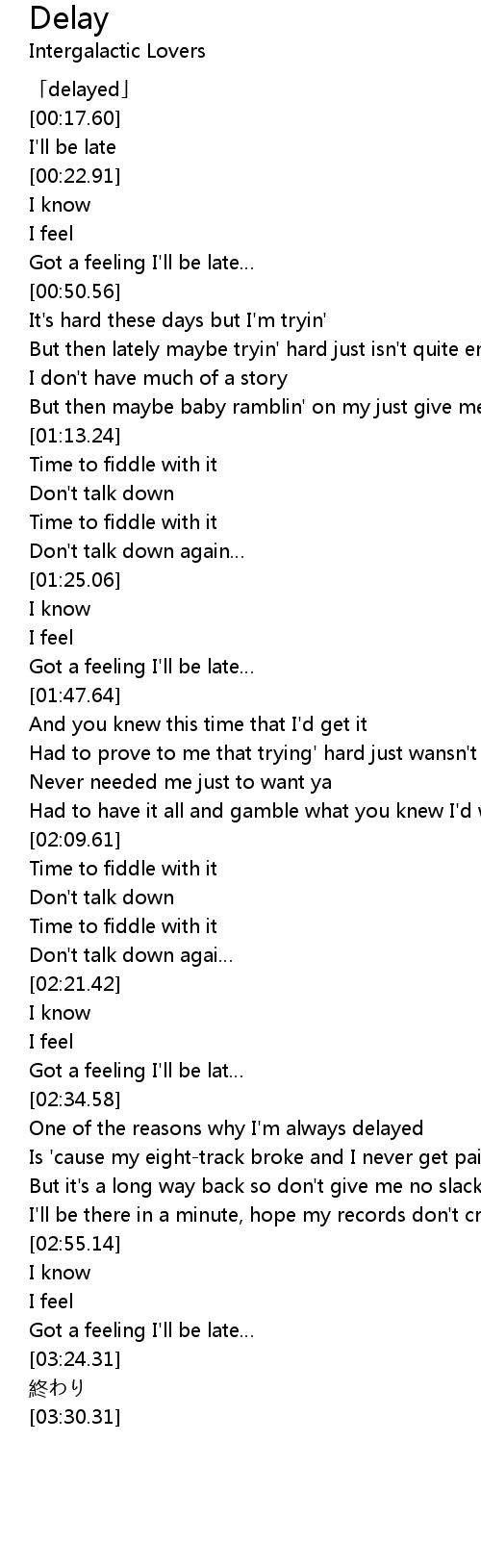 | [02:43.89] | One of the reasons why I'm always delayed |