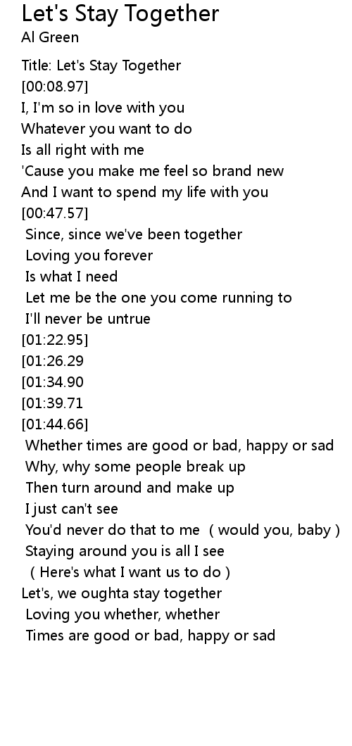 | [03:00.10][01:26.29] | Let's, let's stay together |