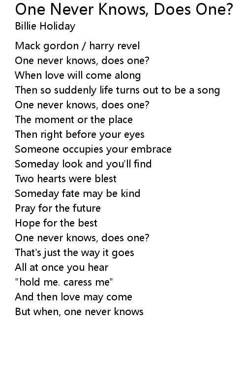 | 歌曲 | One Never Knows, Does One? |
