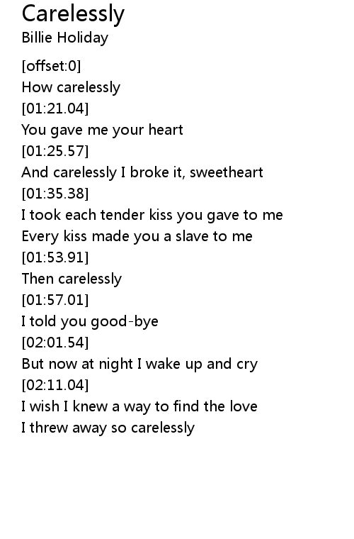 | [01:18.91] | How carelessly |