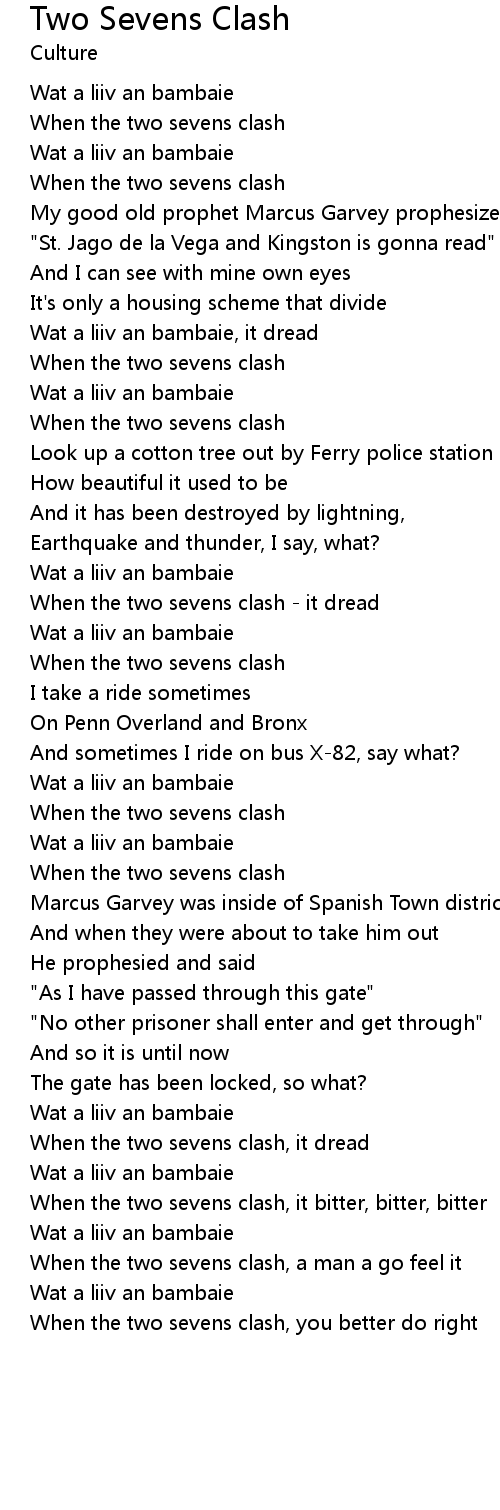 Two Sevens Clash 歌词