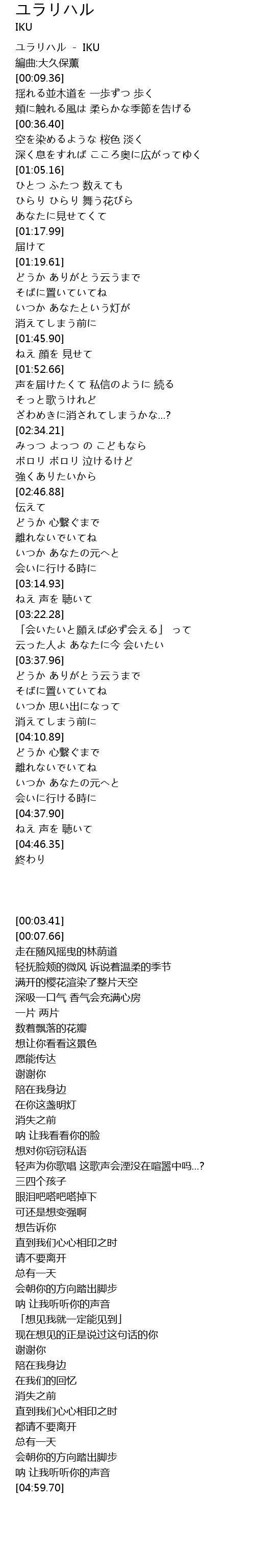 | [00:03.41] | ユラリハル - IKU |