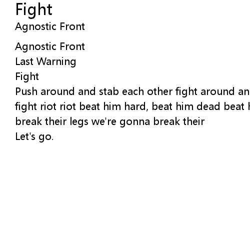 | Push around and stab each other fight around and kill each other fight fight fight riot riot beat him hard, beat him dead beat him harder, beat him down break their legs we're gonna break their | |