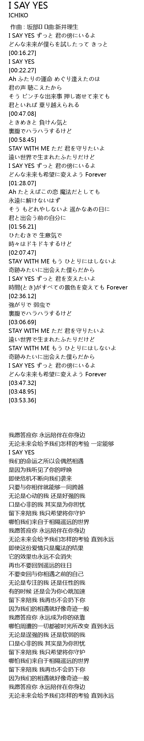 | [03:31.54] | I SAY YES ずっと 君の傍にいるよ |