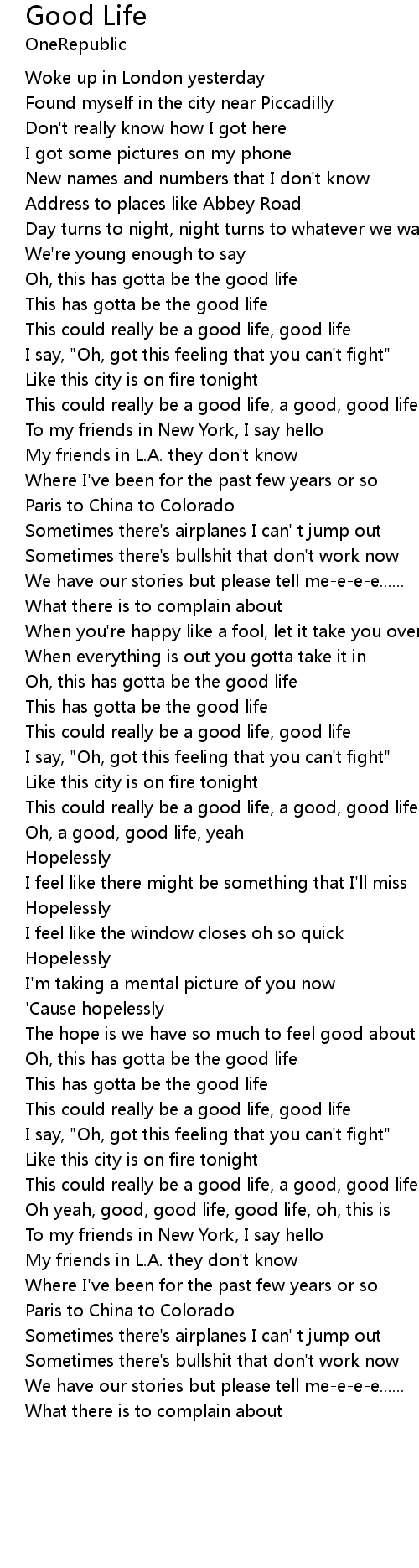 Good Life 歌词