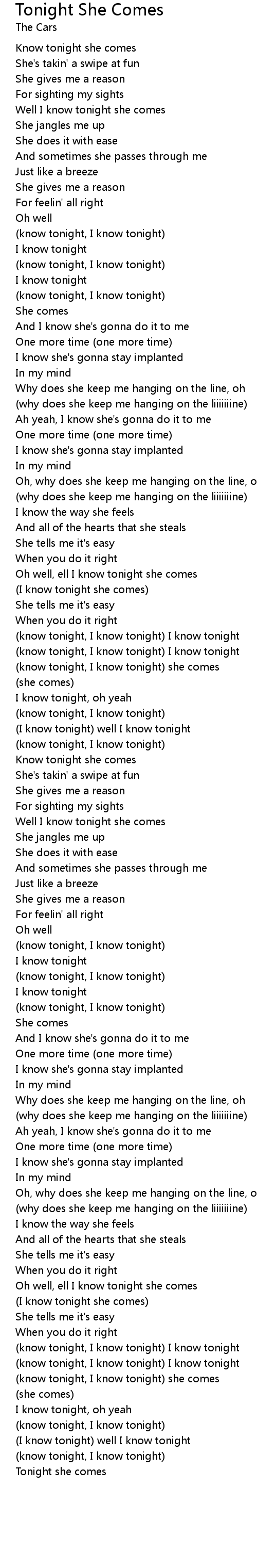 Know tonight she comes |