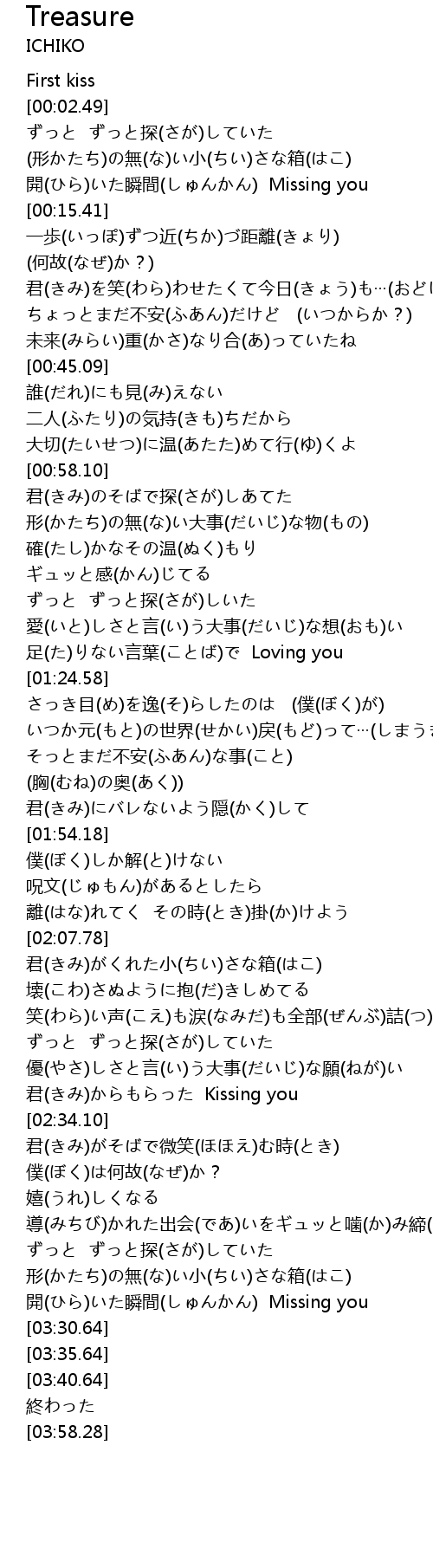 | [02:07.97] | 君(きみ)がくれた小(ちい)さな箱(はこ) |