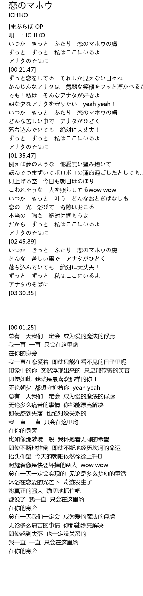 | [02:59.23] | 总有一天我们一定会 成为爱的魔法的俘虏 |
