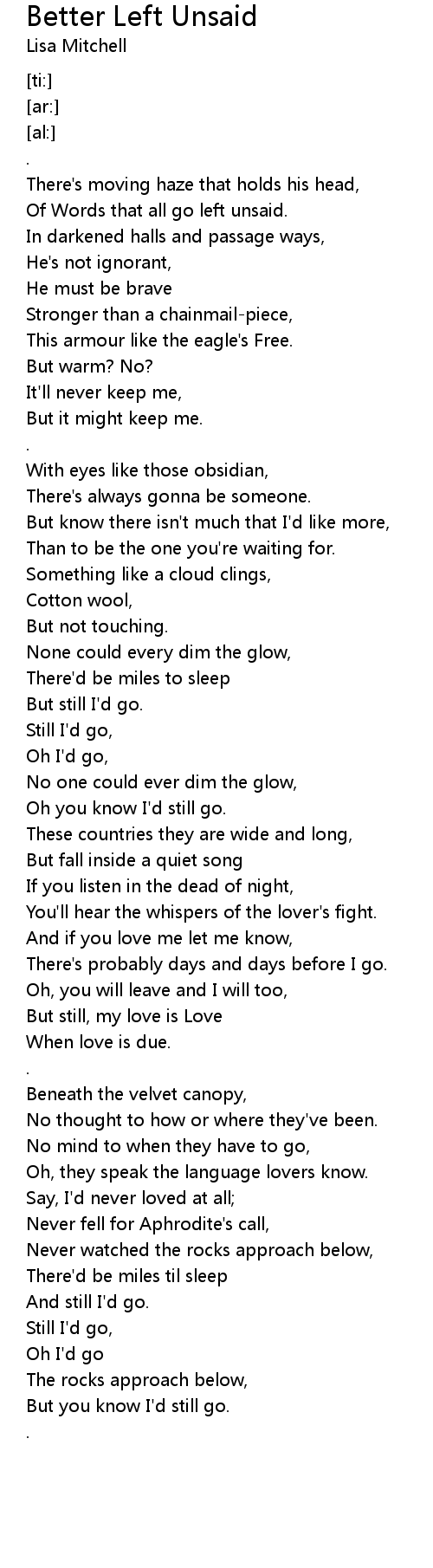 Of Words that all go left unsaid. |