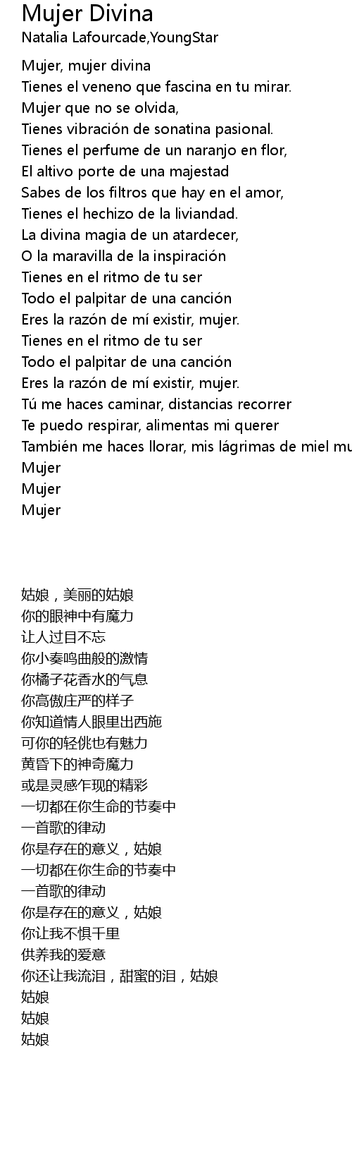 | [01:36.59] | Eres la razo n de mi existir, mujer. |