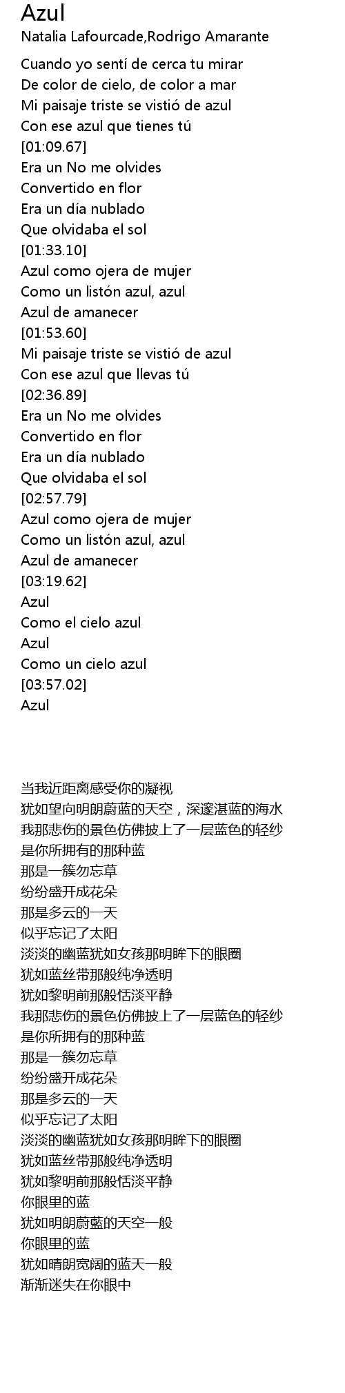 | [03:40.29] | Como el cielo azul |